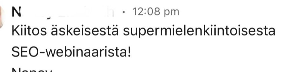...Kunnes vihdoin hahmotin oman blueprintini - metodin ja prosessin, joka toi asiakkailleni poikkeuksetta hienoja tuloksia heidän liiketoimintaansa oikeanlaisen hakukonenäkyvyyden kasvun myötä.📈💶 (Tämän prosessin tulen esittelemään tässä webinaarissa.)
